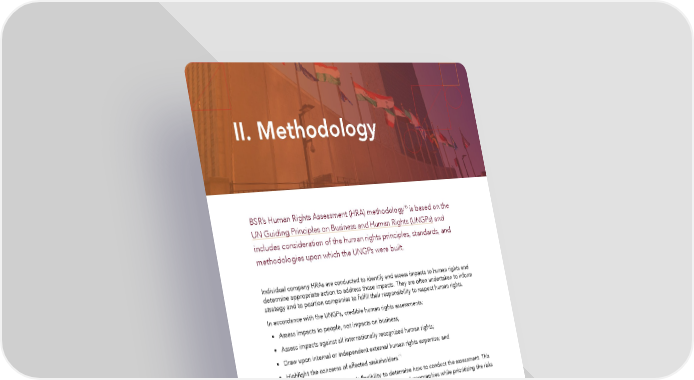 II. Methodology 10 BSR’s Human Rights Assessment (HRA) methodology is based on the UN Guiding Principles on Business and Human Rights (UNGPs) and includes consideration of the human rights principles, standards, and methodologies upon which the UNGPs were built. Individual company HRAs are conducted to identify and assess impacts to human rights and determine appropriate action to address those impacts. They are often undertaken to inform strategy and to position companies to fulfill their responsibility to respect human rights. In accordance with the UNGPs, credible human rights assessments: • Assess impacts to people, not impacts on business; • Assess impacts against all internationally recognized human rights; • Draw upon internal or independent external human rights expertise; and 11 • Highlight the concerns of affected stakeholders. Within these parameters, there is flexibility to determine how to conduct the assessment. This allows for adaptation to different industries, issues, and geographies while prioritizing the risks 12 to people, rather than the risks to the business. 13 This assessment builds upon existing HRA methodology to consider the human rights impacts of a sector as a whole. Sector-Wide Human Rights Assessment A sector-wide HRA differs from an individual company HRA in a few important ways. First, it assesses human rights impacts not only on an individual company or product level, but also considers impacts that may arise from the cumulative actions of several companies. Second, it allows for an assessment of the sector on a macro level, focusing on broader facets 8 Human Rights Assessment of the Software-as-a-Service Sector