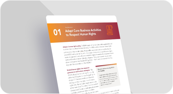 The Call to Action 01 Adapt Core Business Activities to Respect Human Rights Adopt a human rights policy. Establishing robust human rights policies applicable to all business lines is a critical first step for many FIs. While bank and investor human rights policies exist, they remain limited. Responsible investment policies are often framed around ESG and sustainability, with only occasional reference to specific human rights issues, as opposed to robust commitments to respect internationally recognized human rights and conduct human rights due diligence. Policy commitments may be stand- alone or integrated into broader ESG policies. In both cases, it is essential that they 3 align with the expectations of the UNGPs. Embed human rights into corporate governance and business strategies. The Illustrative actions set out by UNGPs UNGPs should be the north star for not only 10+ Roadmap achieving ESG goals, but also for guiding the design of FI business models and business “Adopt human rights policies and embed strategy, as they may carry inherent human human rights due diligence and develop grievance management approaches in line rights risks. Human rights respect needs to be with the UNGPs in their own governance at the heart of an FI’s culture, from the board of frameworks and in the investment directors and C-suite to deal teams, investment decision-making process.” portfolios, environmental and social risk management, public policy, human resources, and procurement. It means having proper incentives and checks to make sure human rights risks are addressed swiftly and appropriately. Where investors sit on portfolio company boards, such as general partners in private equity, it also means using leverage so that board committees have in place explicit human rights mandates, executive pay is tied to corporate human rights performance, and human rights respect is embedded 4 in the corporate business model and strategies. Challenge financial and business practices that are inconsistent with respect for human rights. All business functions and relationships must respect human rights. Lobbying—including through trade associations—at the expense of human rights is inconsistent with the UNGPs. So is financing companies that may be involved with 19 HUMAN RIGHTS ROADMAP FOR TRANSFORMING FINANCE