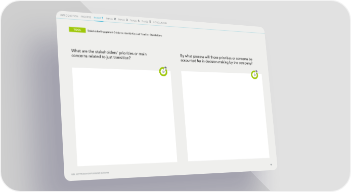 INTRODUCTION PROCESS PHASEPHASE 1 1 PHASE 2 PHASE 3 PHASE 4 PHASE 5 CONCLUSION TOOL Stakeholder Engagement Guidance: Identify Key Just Transition Stakeholders What are the stakeholders’ priorities or main By what process will those priorities or concerns be concerns related to just transition? accounted for in decision-making by the company? BSR JUST TRANSITION PLANNING GUIDANCE 16